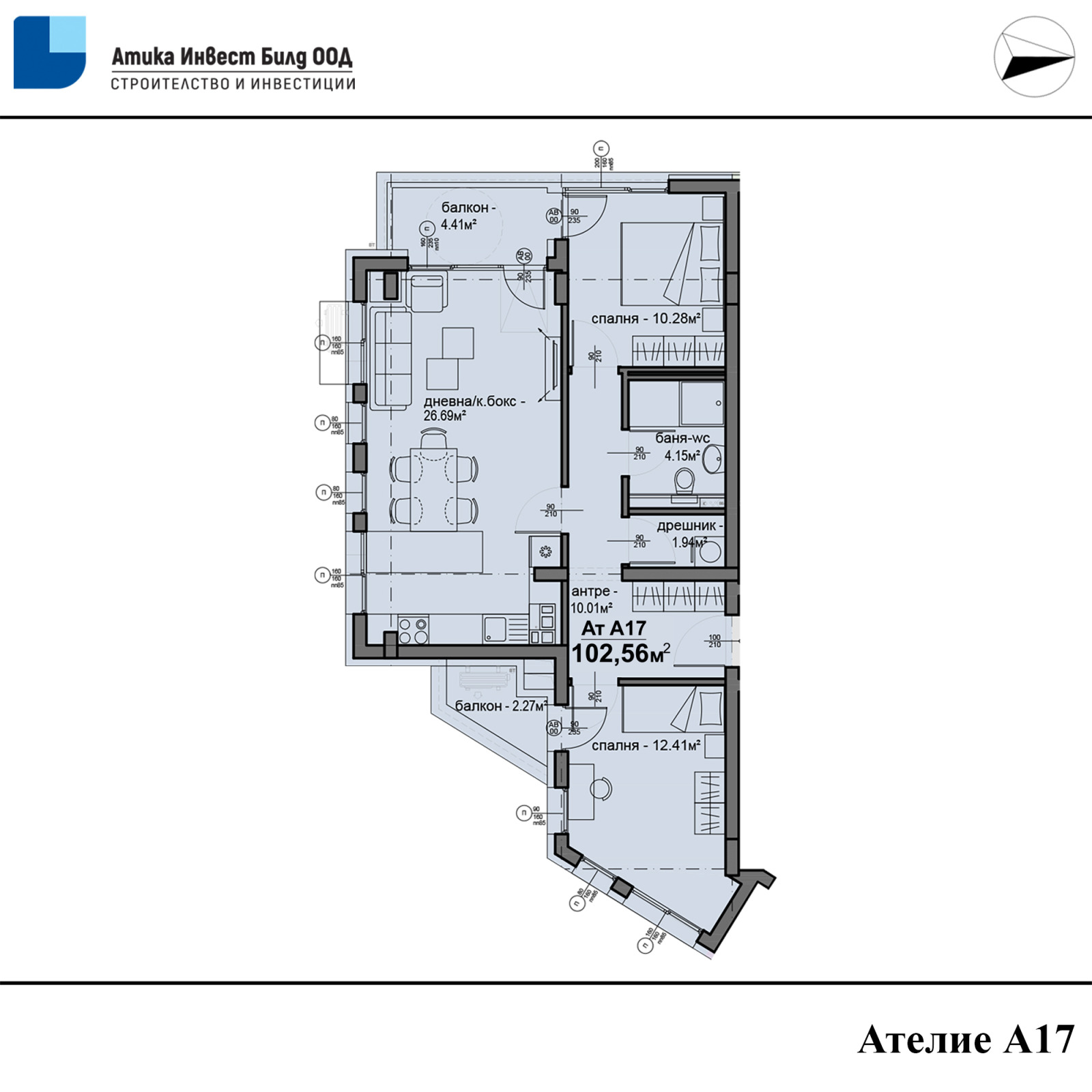 Ат. А17 - 102,56кв.м - 174 400 евро
