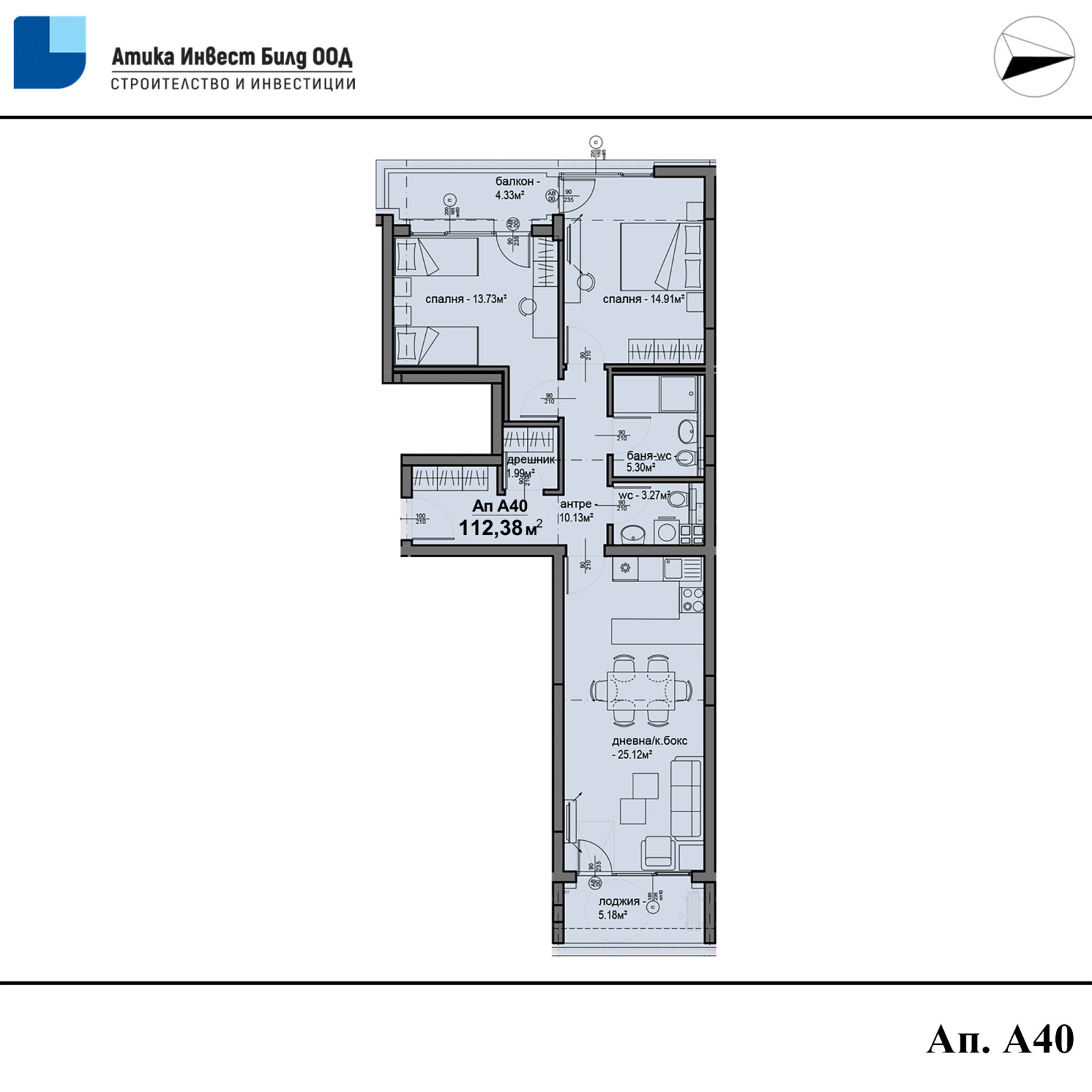 Ап. А40 - 112,38кв.м - 191 100 евро