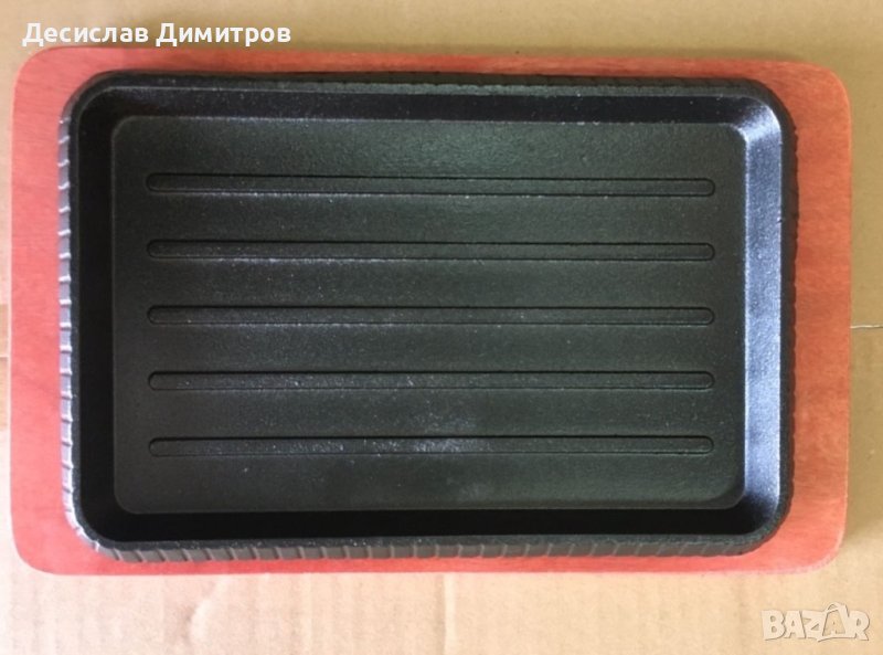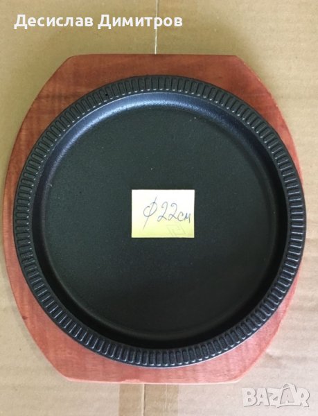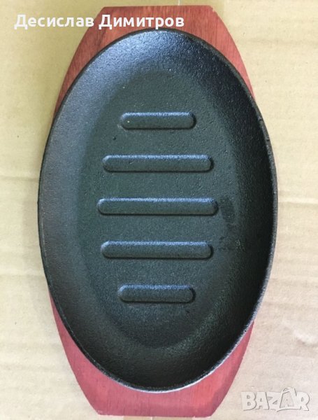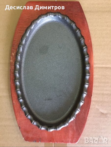 Метални плочи за сервиране на ястия , чугунени с дървена подложка. Елепсовидните са с цена от 12 лв за брой , кръглите и правоъгълния са 15 лв имам налични бройки от всички модели. Размерите са на снимките