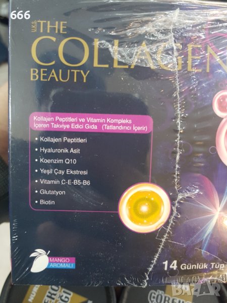 • Придава гъвкавост и здравина на вашата кожа. Предотвратява бръчките и отпуснатостта. Осигурява укрепване на косата. Укрепва структурата на ноктите ви. Полезен е за бръчки, отпуснати под очите, бузи, шия, устни на челото, пачи крак, коса и цялото тяло. Съдържа колагени ТИП 1, ТИП 2, ТИП 3. Добър е при пукнатини, бръчки и кожни проблеми. Съдържа Колагенови пептиди Витамин С Хиалуронова киселина Екстракт от зелен чай Витамин Е Глуататион Коензим Q10 Витамин В5 Витамин В6 Биотин