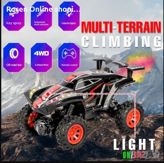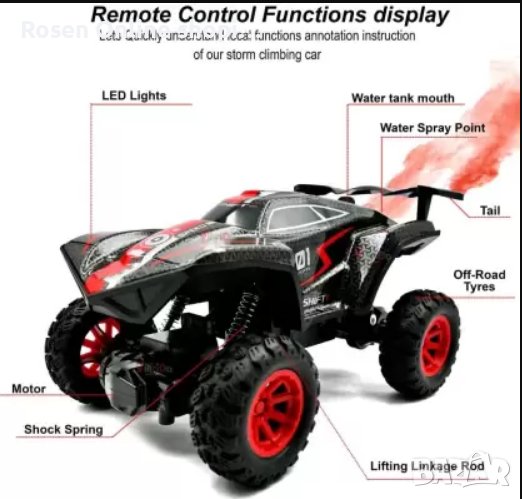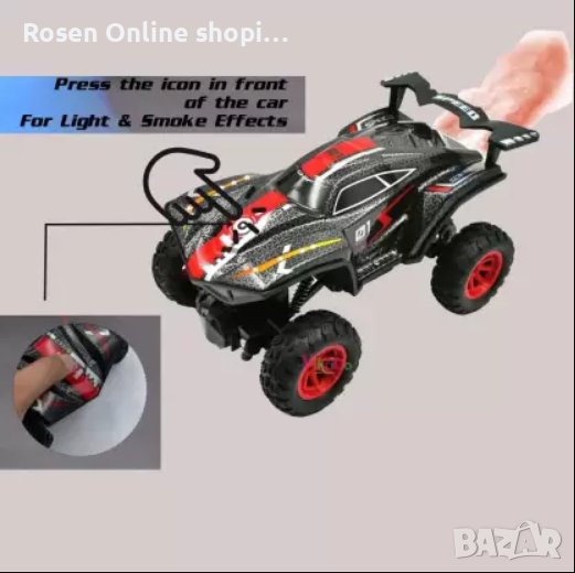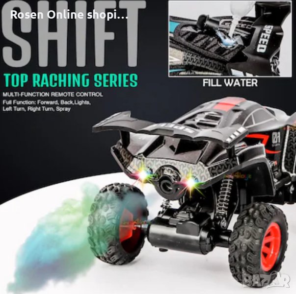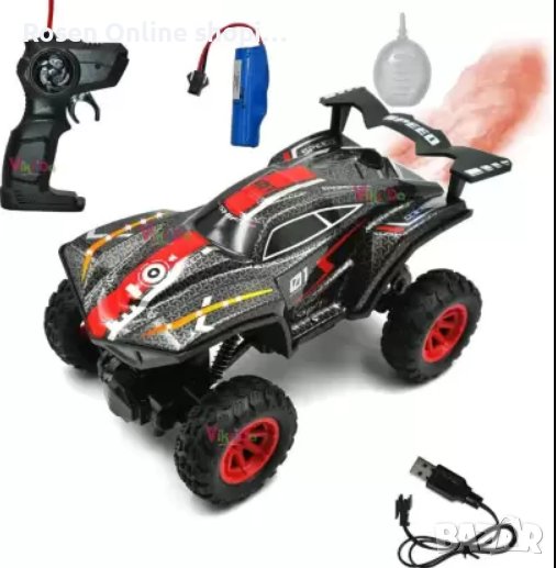 Автомобил с дистанционно управлениеСкоростен офроуд автомобил с ефект на дим от водна мъгла+светлини