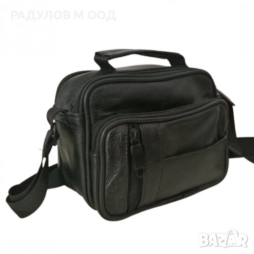 Мъжка чанта от кожа с компактни размери и практично разпределение.