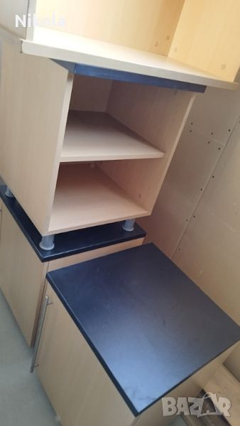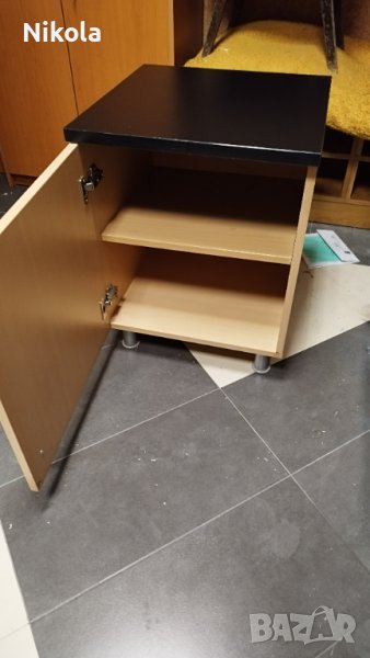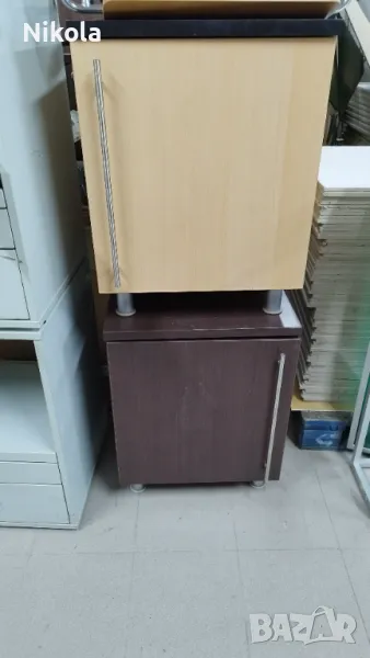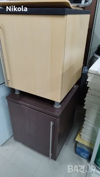 Продавам Шкаф цвят бук с черен плот 50/50/ височина 65см, шкафчето е с вратичка и рафт запазено. Метална дръжка и панти има и крачета с възможност за нивелиране. Имам 4бр като цената от 85лв е за един брой.