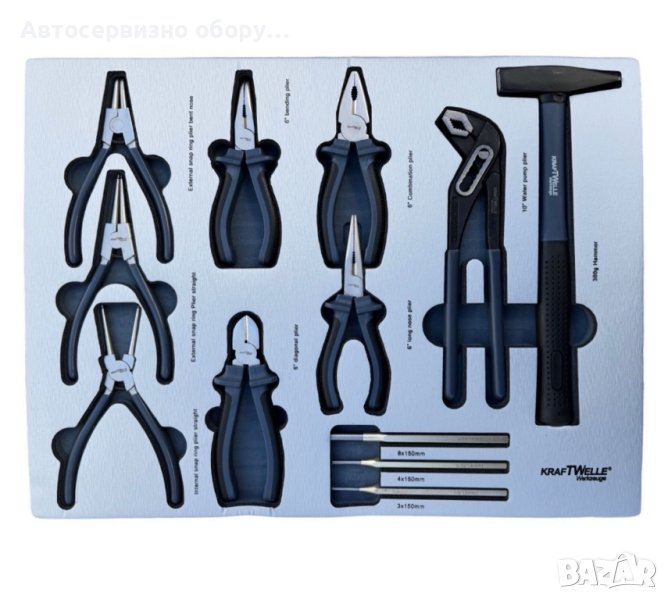 •Клещи 4 бр : Комбинирани , Резачки , Прави челюсти , Криви челюсти