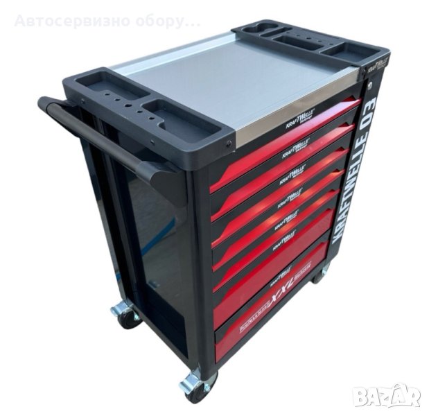 Количка с метален плот със 7 чекмеджета ,6 от които са пълни с инструменти.