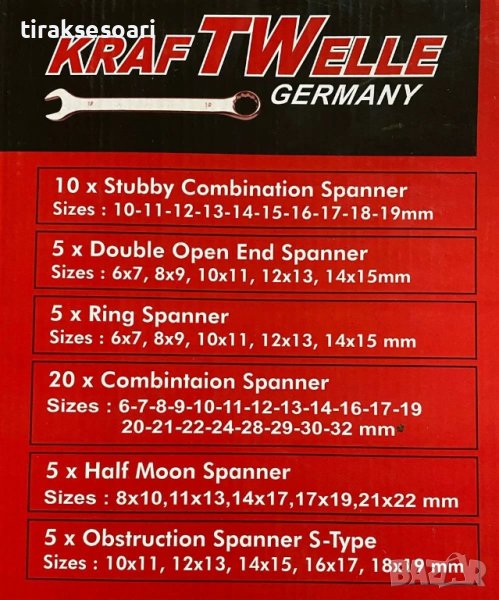 Професионални комбинирани ключове 50 части , изработени от хром ванадиева стомана , марка KraftWelle .