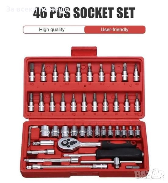 Висококачествен комплект от 46 части гедоре 1/4