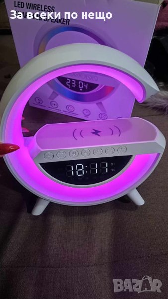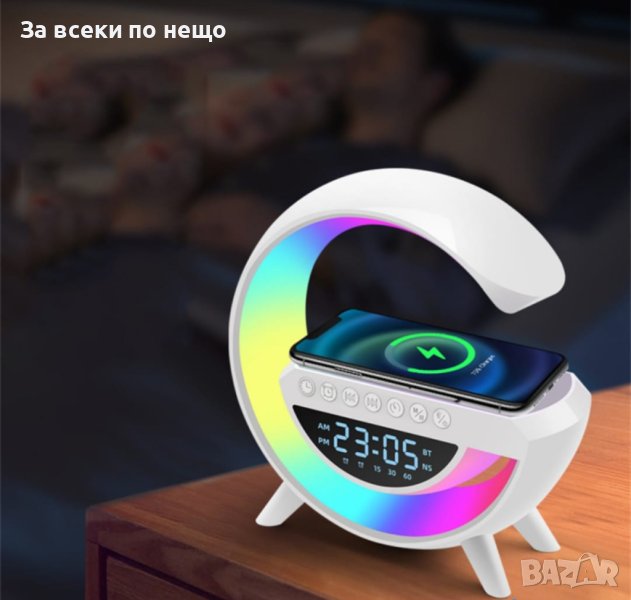 Смарт Лампа 4в1 - Часовник, Тонколона, Лампа, Безжично заряднo