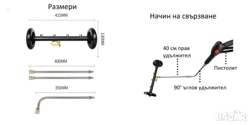 1бр. 35см извит на 90 градуса удължител с накрайник за съответния модел водоструйка