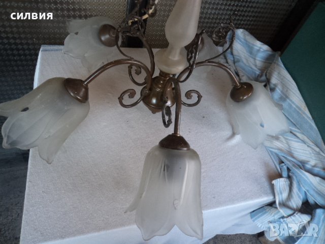 стъклен бронзов полюлей около 70 см. височина , и също толкова диаметър