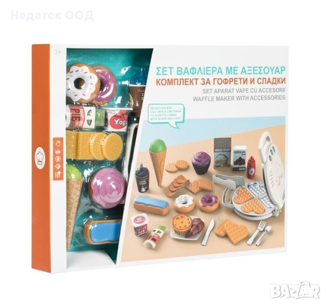 Комплект за гофретници със съставки за направата на най-вкусните и впечатляващи гофрети.Използвайте желаните съставки и почерпете приятелите си!Има бутон за възпроизвеждане и пауза, светлини и музика.Работи с 3 батерии тип AG13 (включени).