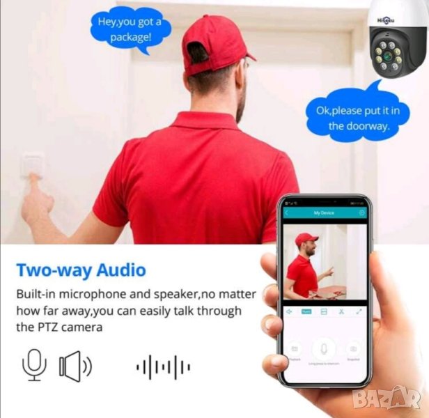 – Двупосочно аудио: Вече без значение колко далеч сте, можете лесно да говорите през WIFI IP камерата, дори и да не сте у дома.