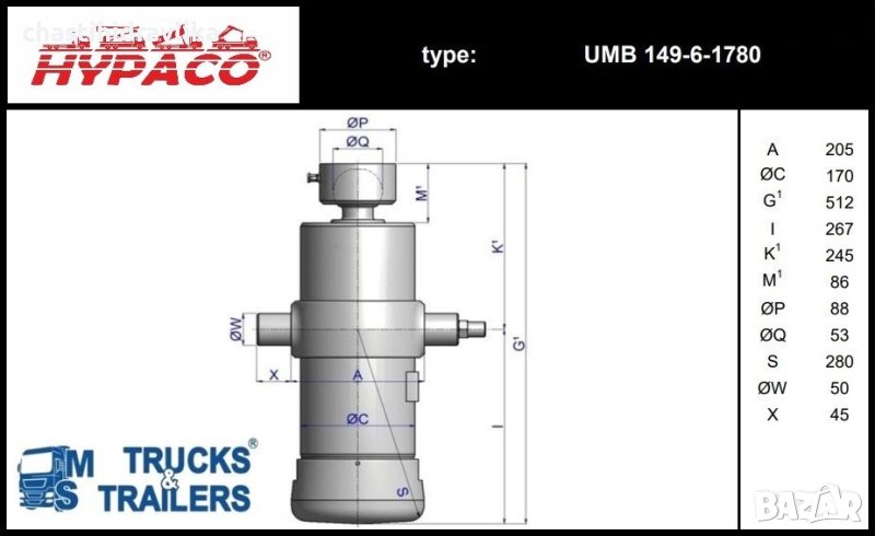 За монтирането на този Хидравличен цилиндър са необходими допълнителни елементи, които се заплащат отделно.
