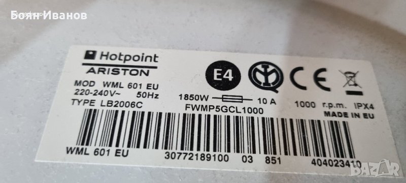 Ariston Hotpoint WML 601 EU - НА ЧАСТИ → Обява 43487920