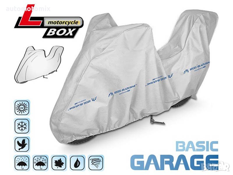 Висококачественото покривало Mobile Garage е продукт, съобразен с нуждите на водачите. Покривалото е изработено от 4-слоен материал, който е плътен, здрав и издръжлив. Предпазва целия мотоциклет от вредните влияния на околната среда. Покривалото на Mobile Garage осигурява адекватна защита за вашия мотоциклет през цялата година. Функционалността му може да бъде оценена по всяко време на годината. През зимния сезон предотвратява отлагането на сняг, скреж и лед, а също така е устойчив на замръзване; през есента предпазва от дъжд, вятър, листа и дървесни сокове; а през лятото и пролетта предпазва от UV лъчи, прах и птичи изпражнения.