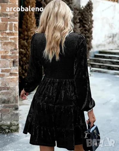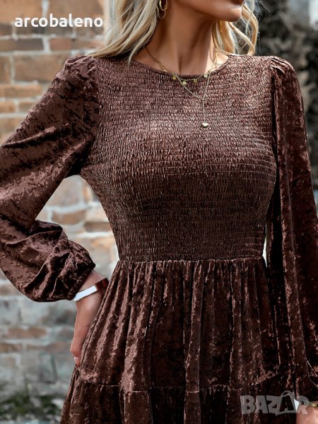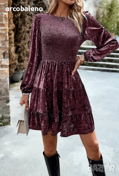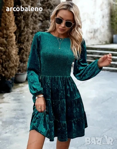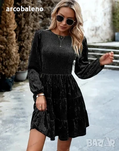 Дамска елегантна кадифена рокля с кръгло деколте, 4цвята