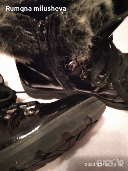 Топли боти за момиче естествен лак с цип отвътрешната страна с гумирана подметка 33ти номер цена 30 лв. Сиви топли 31номер 25лв.