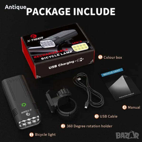 Солиден и мощен фенер за колело или електрически скутер с различни режими на светене. Разполага с IPX5 защита против намокряне и USB букса, като така устройството може да служи като power банк. Осветява в диапазона на 200-300 метра.