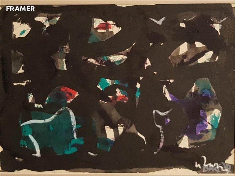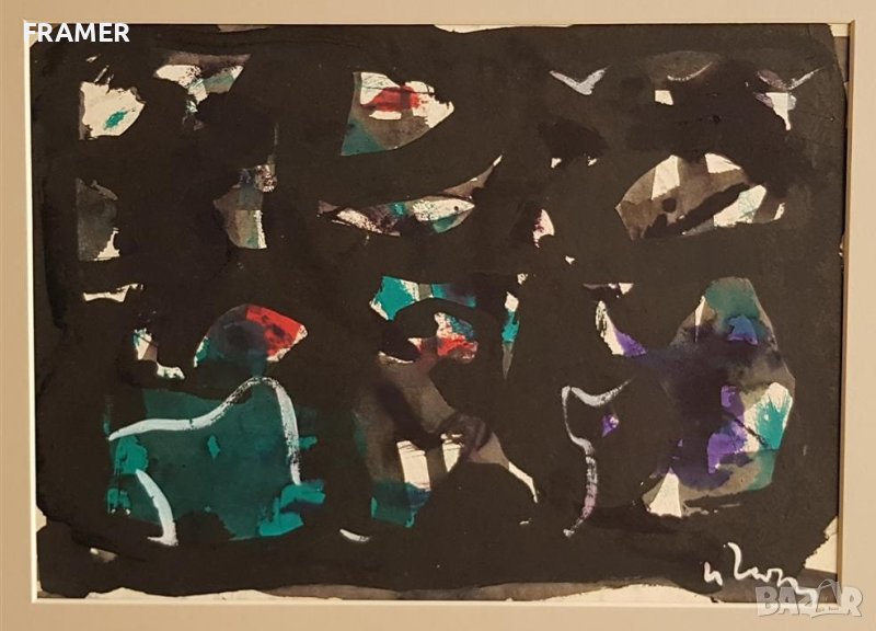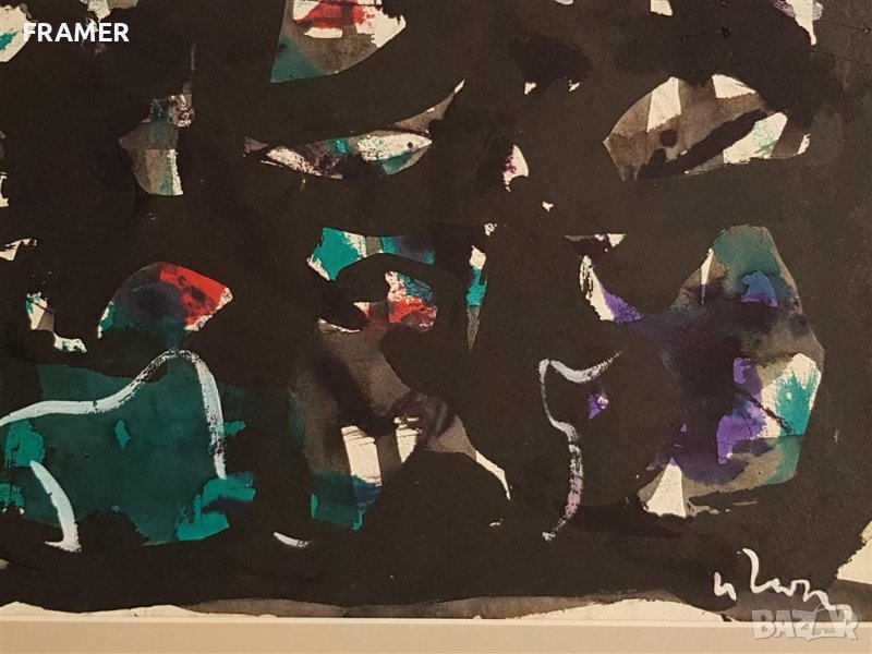 Творбата е перфектно оформена в Стилна дървена рамка с паспарту и стъкло.