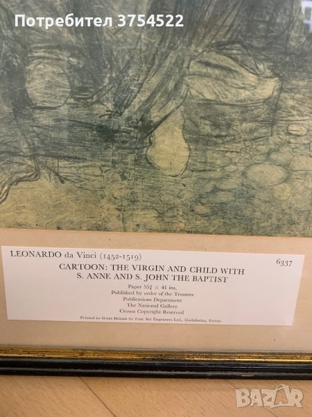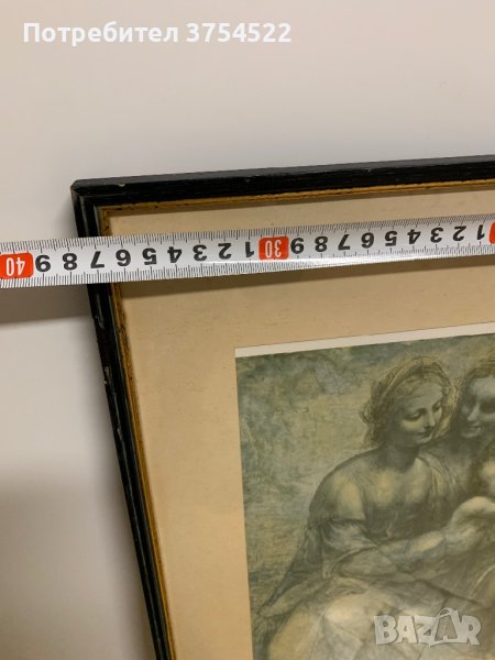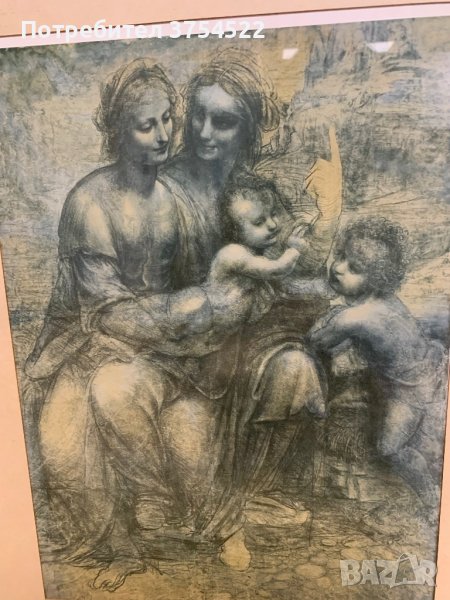 Лицензирана стара литография на картината на Леонардо да Винчи “ Св. Анна с Mадоната и младенеца“, която изобразява Св. Анна, нейната дъщеря Дева Мария и невръстния Исус.