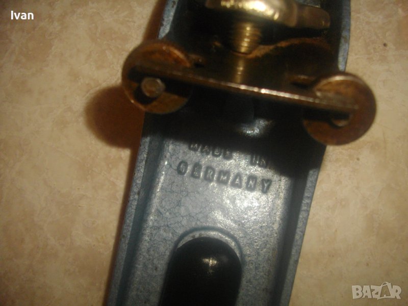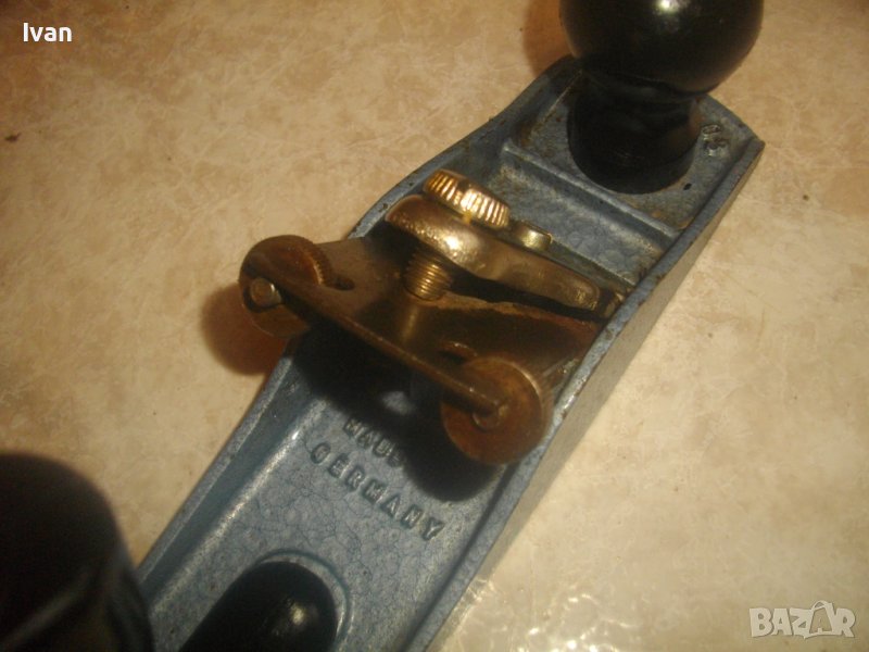 ОПИСАНИЕ на ръчно дърводелско ренде метално - цена 139 лв. Ново, неизползвано и неупотребявано. Старо качество - немско - Западна Германия. Марка маркировки - WITT №3 - Made in Germany.Метална долна основа с размери 225 х 55 мм, нож оригинален ширина 45 мм, рглажж метаален на дълбочината стружуване. Винтовите врътки на реглажа вървят леко и без запъване. Предна и задна дръжки от твърда пластмаса. Вградено място в задната дръжка.