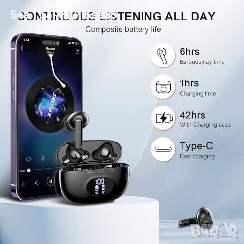 Нови Bluetooth 5.3 Слушалки, ENC, IP7, 38H Батерия Водоустойчиви