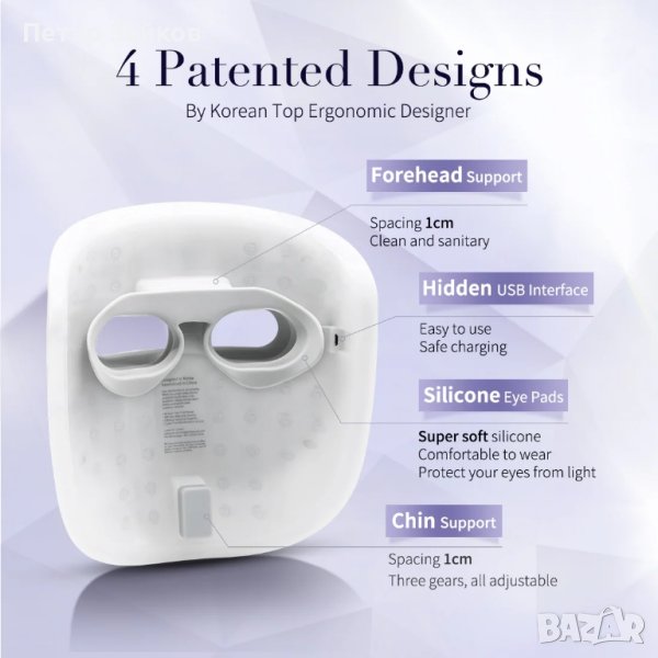 Борба с бръчките (червена светлина), стимулиране на колагена (близка инфрачервена светлина) и лечение на акне (синя светлина) с прецизни дължини на вълните (820nm, 630nm, 465nm) за оптимални резултати с ±5nm точност