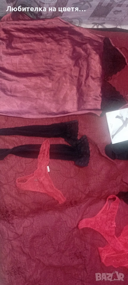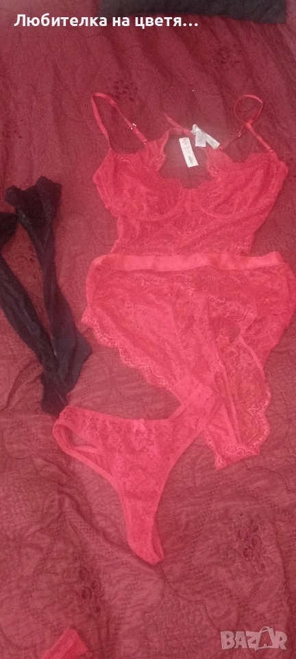 И чорапите,чорапогащника със нощницата,бодито са нови ,общо трите комплекта за 100евро ,само червеното боди струва 27паунда ,чорапите и чорапогащника са в оригиналната си опаковка. Идеални за подарък ,поотделно 35евро за лот от една снимка.
