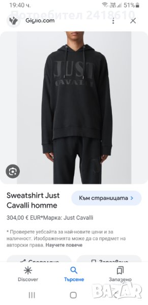 JUST CAVALLI Hoodie Oversize Mens Size S/M НОВО! ОРИГИНАЛ! Мъжки Суичер!