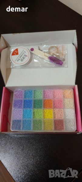 Мъниста с буквички, животинчета и още много други формички. 14 200 броя разноцветни мъниста, за да може Вашето дете да създаде многобройни гривнички. В комплекта е включено всичко необходимо за създаването на гривни, като ножичка, пинсета, корда и още много други неща. Мънистата са с кутия за пренасяне и допълнителна красива кутия, готова за поднасяне на подарък.