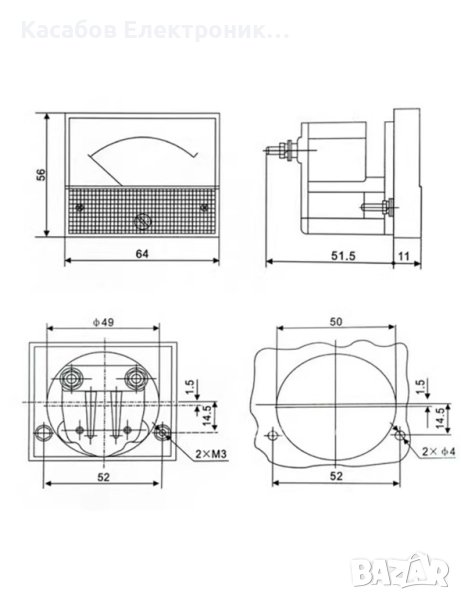 Аналогов стрелков амперметър за измерване на ток до 20А в комплект с шунт. Висококачествената изработка и ясната скала правят този модул отличен избор, например, при изграждане на ваш собствен токоизправител.