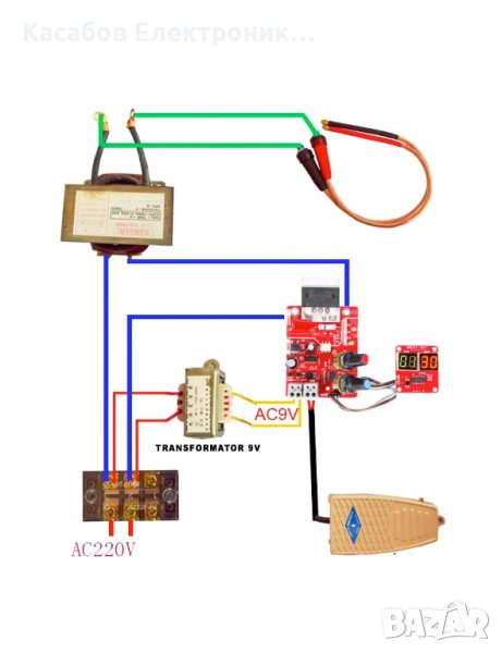 За работа са ви необходими още: захранване, трансформатор, заваръчни електроди и импулсен педал за задействане.