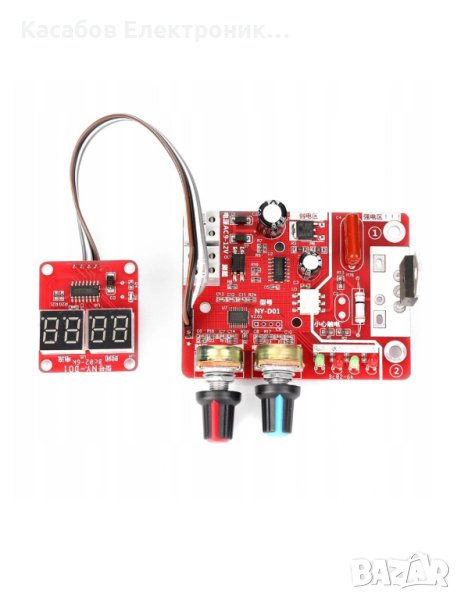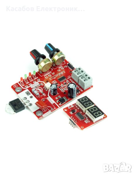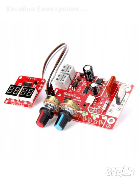 Контролен панел за точково заваряване, поддържа ток до 40A. Модулът има 2 дисплея, които показват времето на импулса и заваръчния ток и 2 висококачествени 1-битови потенциометъра, позволяващи прецизно настройване на параметрите, показани на дисплея. Използваният оптрон ефективно изолира захранването от 230 V от платката, което я прави по-безопасна за използване.