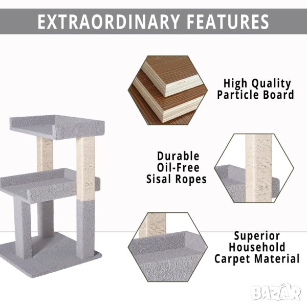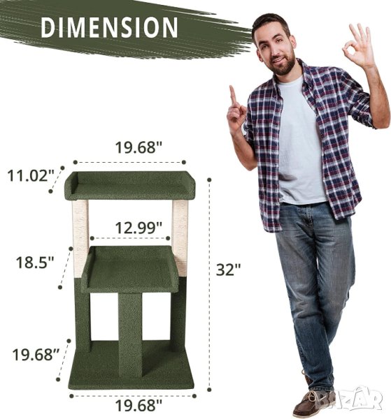 Ако търсите петзвездна котешка кула, днес е вашият щастлив ден. Naomi Home Lulu Large Cat Tower е единствена по рода си. Проектиран с две нива, всяко ниво може да издържи над 50 паунда, за да може вашето голямо коте удобно да се отпусне и да се забавлява. Naomi Home дава ясно да се разбере, че вашето коте е безопасно и здраво, използвайки домакински килим и безмаслено сизалено въже. Предлага се с различни цветови опции.