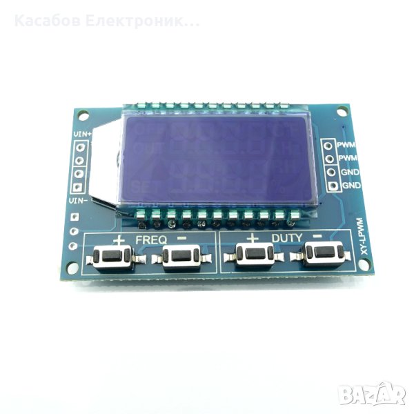 Генератор на ШИМ сигнал с голям LCD дисплей с подсветка и лесен за настройване. Работи в диапазона 1Hz - 150kHz.