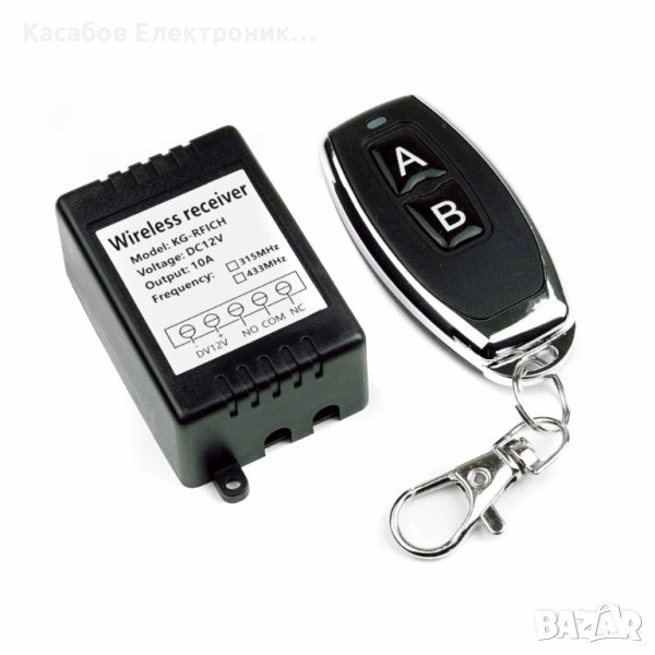 Едноканален релеен модул с дистанционно управление на честота 433MHz. Релето има 4 режима на работа: превключване с 1 бутон, превключване с 2 бутона, превключване чрез задържане на бутона, превключване за време: 10, 30, 90, 120 секунди. Имаме следните релейни конектори: NO, NC, COM. Обхватът в празно пространство е около 80м. Модулът е лесен за програмиране и много надежден. Задаването на съответната програма за превключване става, чрез натискане на бутона за програмиране на платката съответния брой пъти. Модулът може да запомни до 32 бутона.