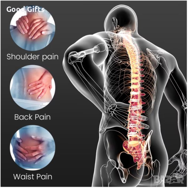 Разполага с 89 магнита, разположени в областта на кръста, корема, гърба, раменете и врата