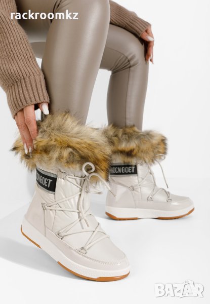 Дамски апрески с пух в бежов цвят