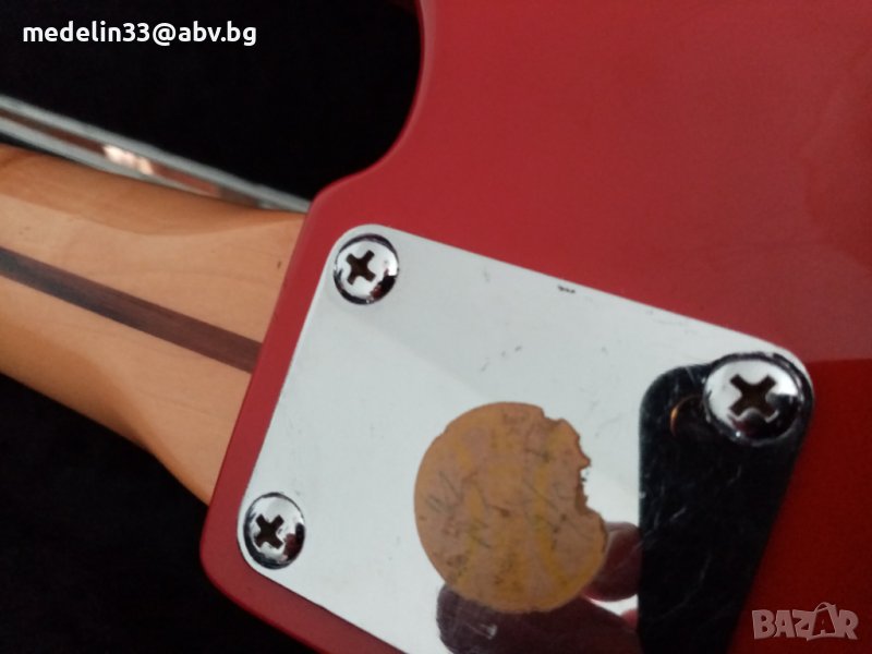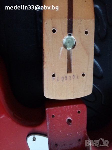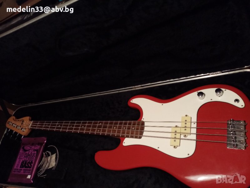 Баса е автентичен, сериен номер 9102201 произведен в Индия през 1991 г в завода на Fender Musical Instrument Corporation.