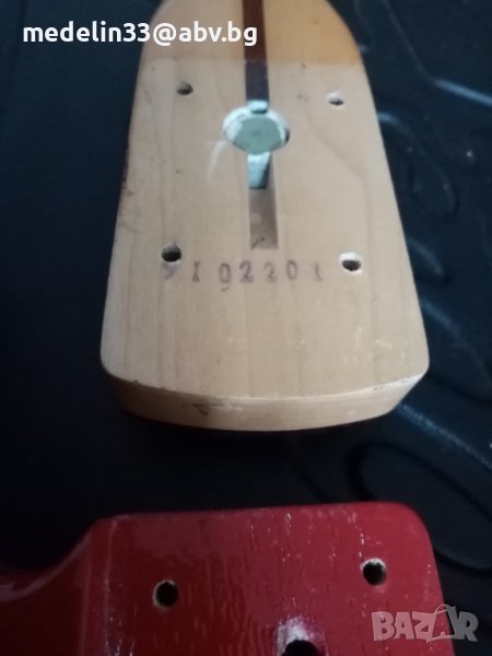 Тялото е ясен/ash/, грифа е от клен/maple/ с вложка от палисандър,
