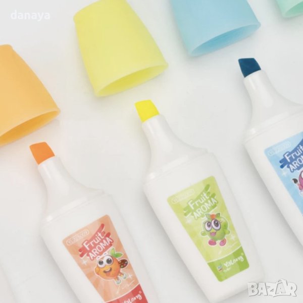 Цветни маркери за подчертаване. Ярките флуоресцентни цветове на маркерите ще помогнат да отбележиш най-важното в твоите бележки и записки. Скосен връх, който позволява да правиш тънки и дебели линии. Маркерите са подходящи за всички видове хартия, дори и за факс, а мастилото им изсъхва незабавно.