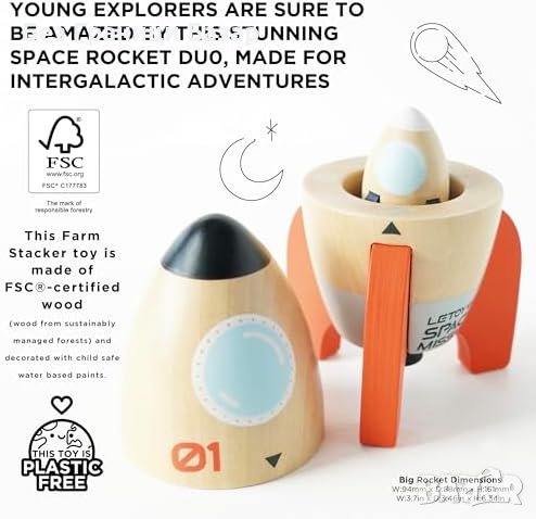 - Играчка-ракета от дърво "Le Toy Van TV808": Идеална за деца над 24 месеца.