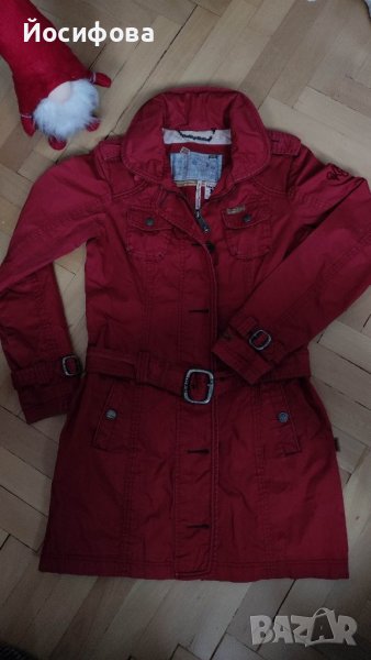 Прекрасна яркочервена парка / дълго яке / тренчкот на известната марка Khujo, в перфектно състояние, размер М.
