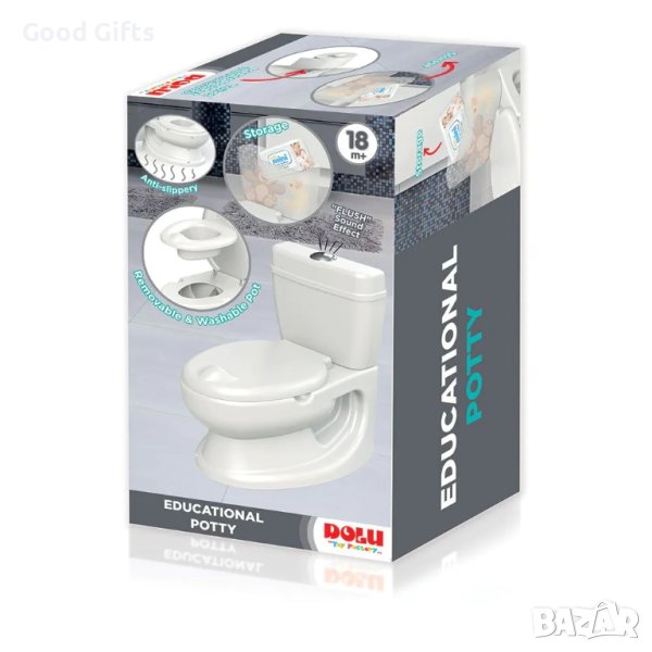 Преходът от гърне към истинска тоалетна може да стане лесно. Гърнето - тоалетна чиния е съвсем като истинска тоалетна. Чуват се звуци от пускане на вода, има място за тоалетната хартия.