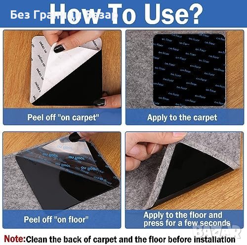 - Иновативно Залепване: Специални квадратни ъглови държачи за килими с високотехнологично противоплъзгащо покритие.