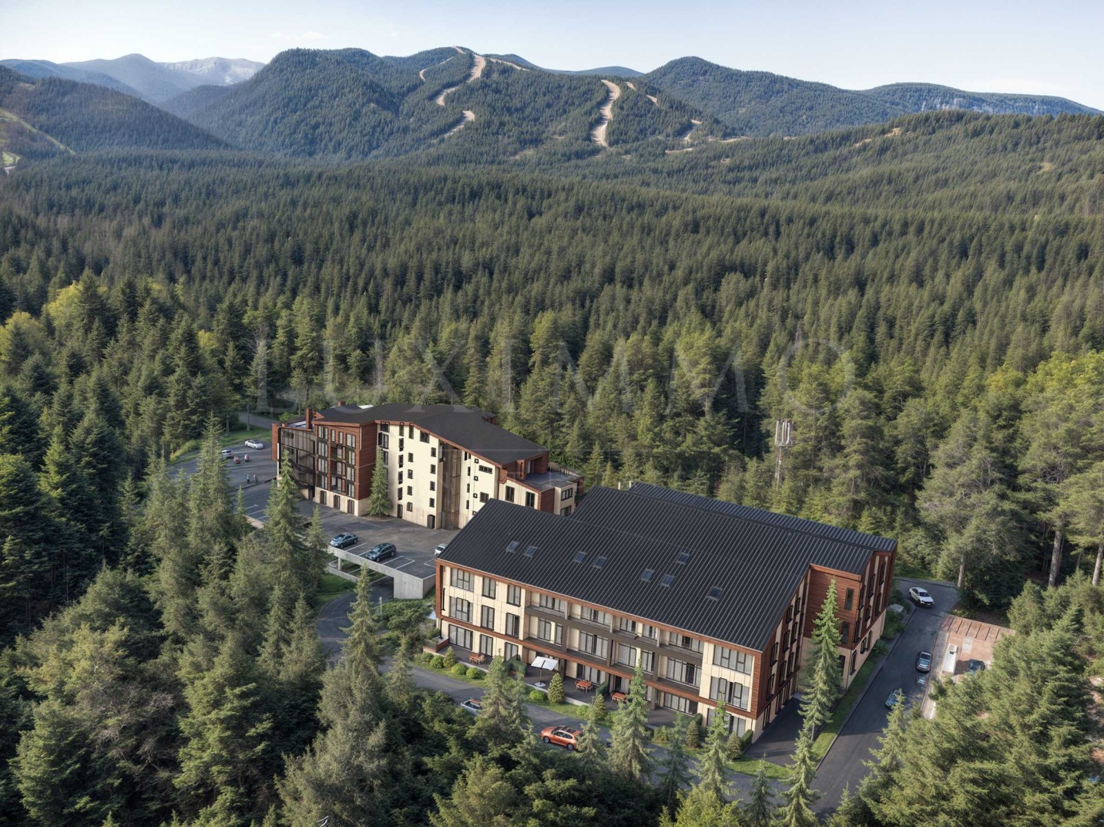 Ексклузивно представяме двустаен апартамент за продажба в 7 Angels - луксозен жилищно-ваканционен комплекс, разположен сред вековните борови гори на величествената Рила планина. Проектът ще бъде изпълнен без компромиси и има амбицията да се превърне в една от най-реномираните и престижни резиденции в аристократичния планински курорт на България. Местоположението е с бърз достъп до центъра на курорта, на 900 м от кабинковия лифт и само на 50 м от 800-метрова ски писта за начинаещи.