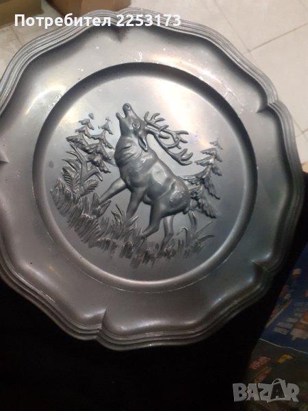 За бр.Куче с фазан продадено.С кука за закачане на стена,ловни мотиви,матерял цинк,23см,като нови,релефни са,но хората на север са ги ползвали като чиний.м.до.Чиста чиния с кука(последна снимка.)22лв.м.до.Сн.8 цинкови лъжица за хранене и декор,18см,цена 10лв.м.ш1