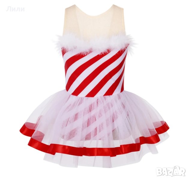 НОВА уникална и атрактивна рокля с пухче и панделка, коледен костюм, празнична дреха за парти