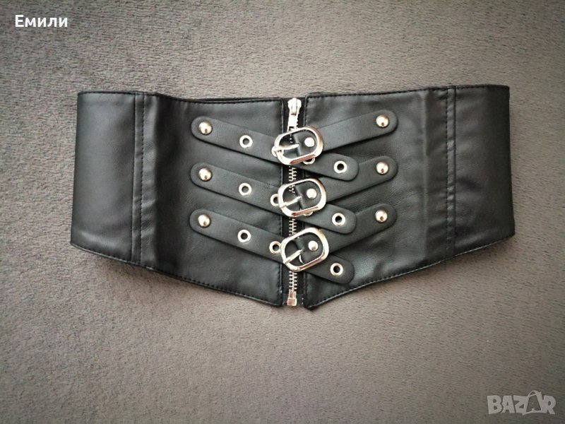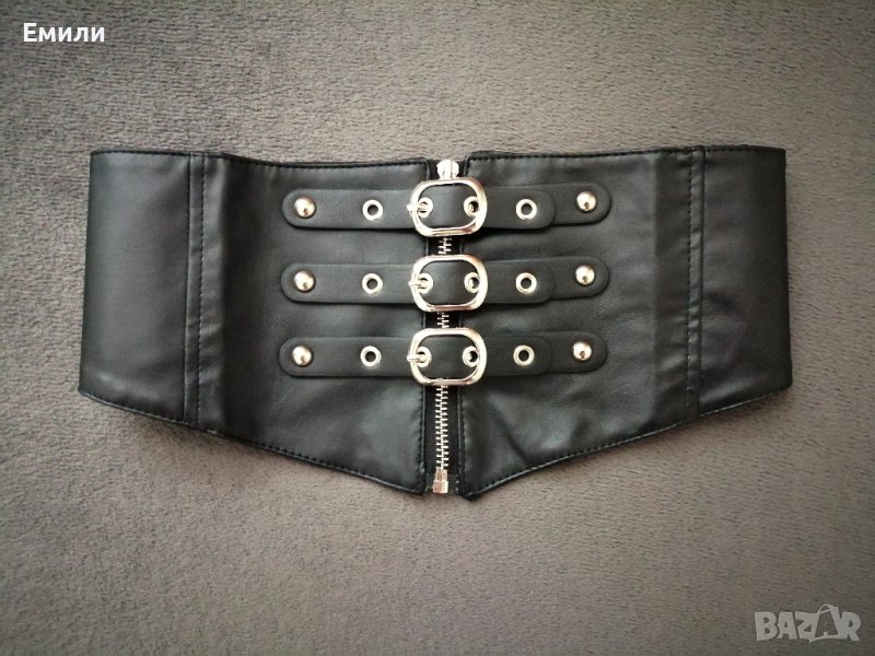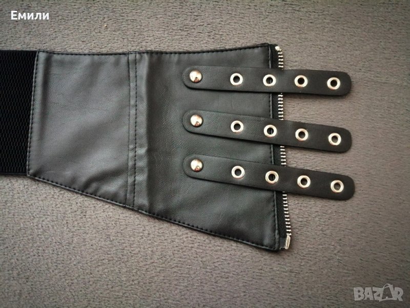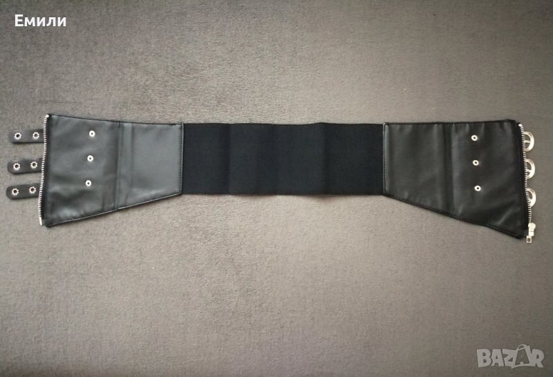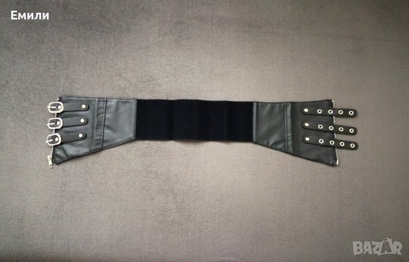 Широк кожен колан за талия - корсет с цип, катарами и ластик р-р S, M → Обява 43518487