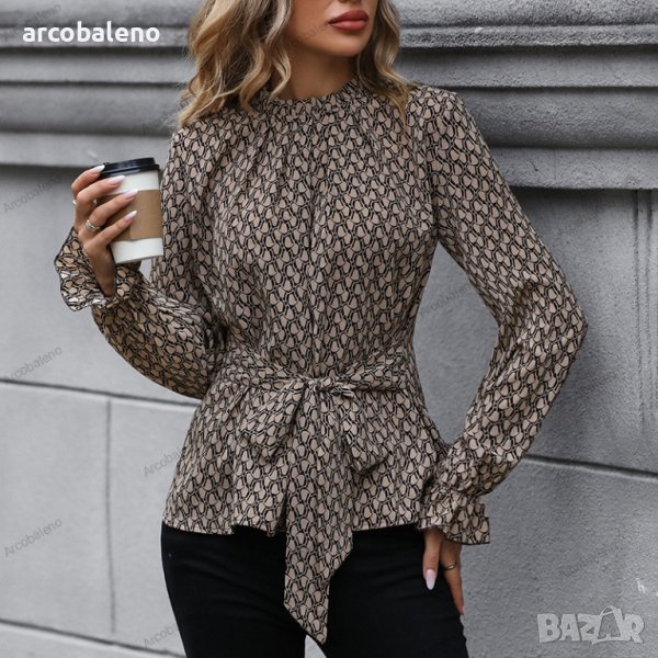 Дамска вталена есенно-зимна риза с дълъг ръкав и леопардов принт
